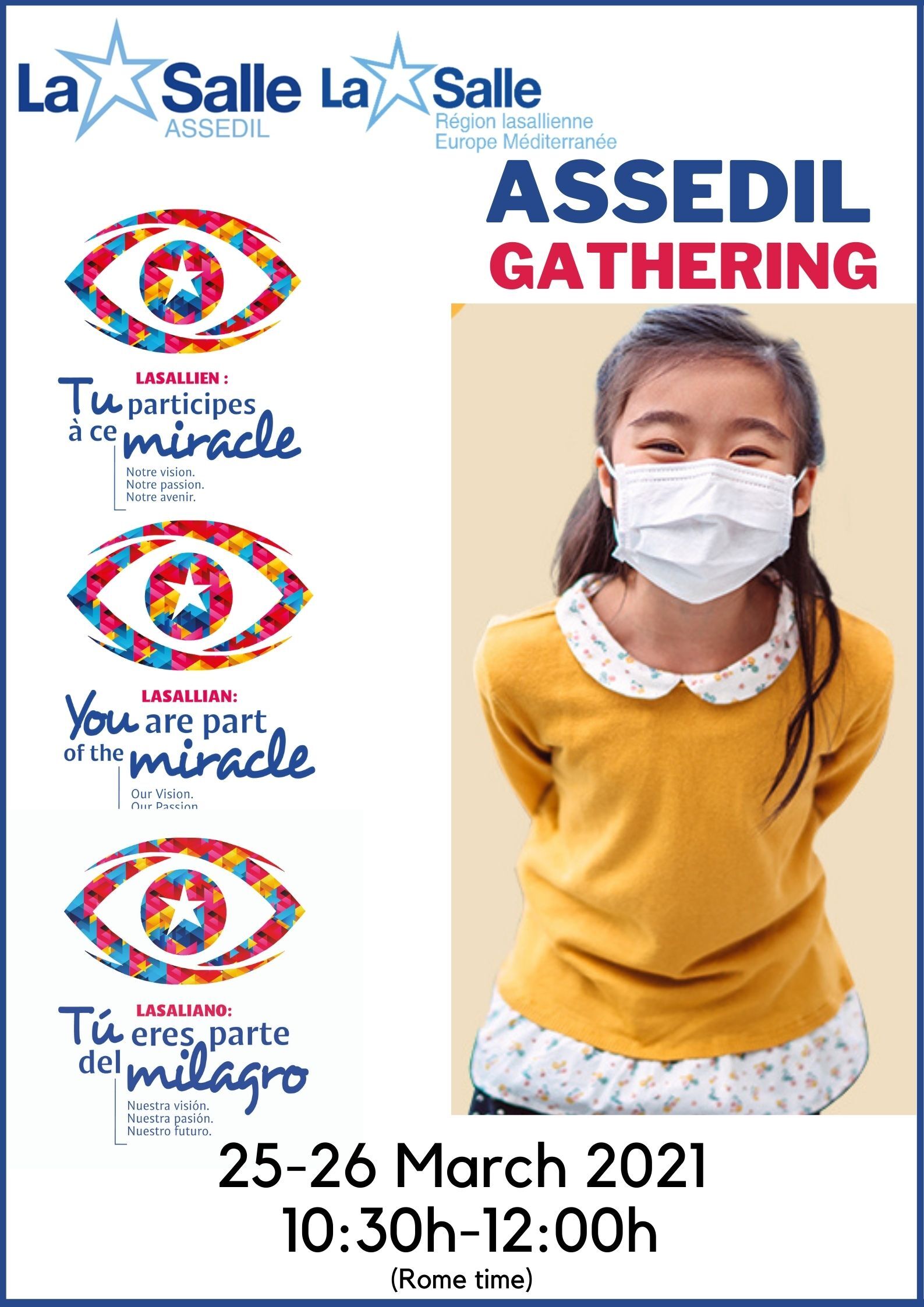 The ASSEDIL Gathering will take place on March 25th and 26th this year from 9.30am to 11am GMT (10.30am to Noon in Malta) as a way of supporting each other in these difficult times. The theme of this online meeting will be: ‘You are part of the Miracle’. This meeting will span two half days, allowing for the sharing of experiences of solidarity during the pandemic and for a celebratory cross-border get-together. We will keep you updated with details about the programme but here we simply wanted to give you a brief outline of the content of the gathering. This will include: